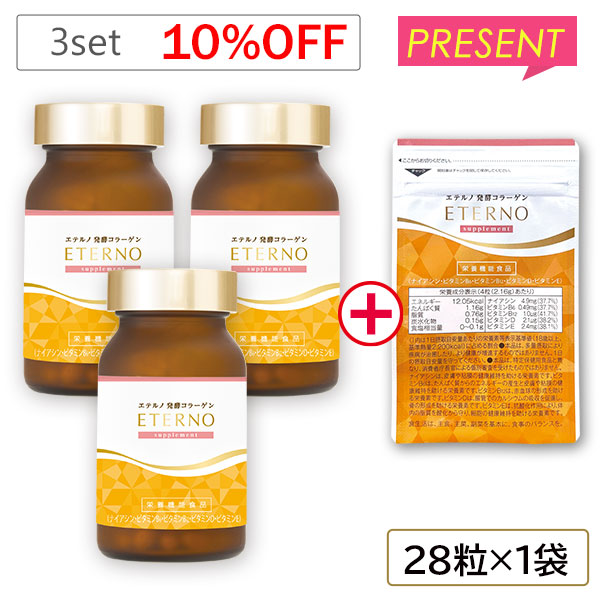 エテルノ発酵コラーゲンnew120粒入×3本(10%OFF・28粒×1袋付)※