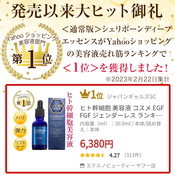 話題のEGF&FGFも配合!さらに「プラセンタエキス」「ヒアルロン酸」「プロテオグリカン」の美の三大成分も配合したワンランク上のぜいたく美容液です!