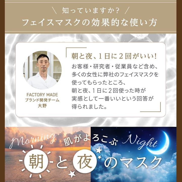 朝夜使ってほしいこだわりのマスクです。