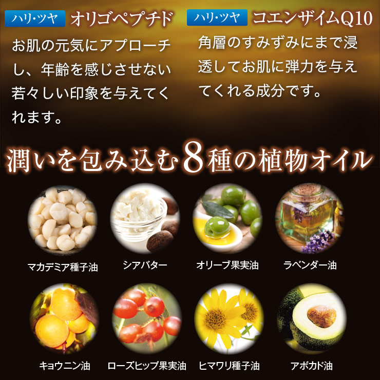 こだわり潤肌・美肌成分を11種もギュッと配合しました!目指せ!見た目年齢-10歳!