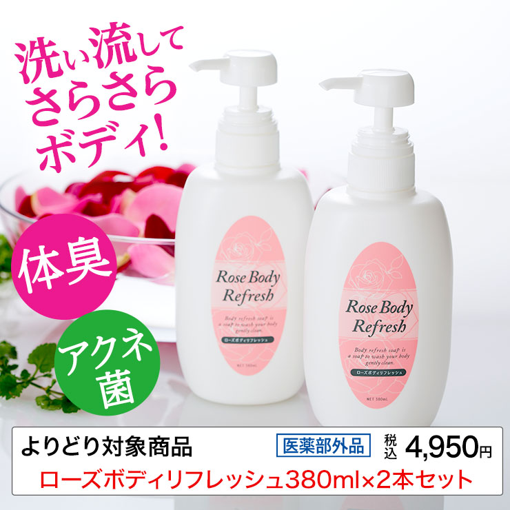 3つの有効成分が温浴効果をあげて血行促進、トリプル酵素が古い角質や皮脂汚れをキレイに!2.ローズボディリフレッシュ2本セット