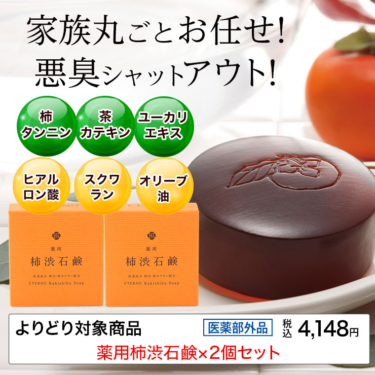 ニオイと背中やデコルテの肌荒れが同時にケアできる薬用ボディソープ。ブルガリア産ダマスクローズ使用。3.薬用柿渋石鹸2個セット