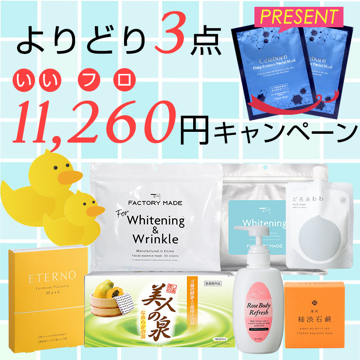 入浴剤・ボディーソープ・フェイスパックを自由に組み合わせて、お好きな3点を選べる“よりどり企画”をご用意しました。