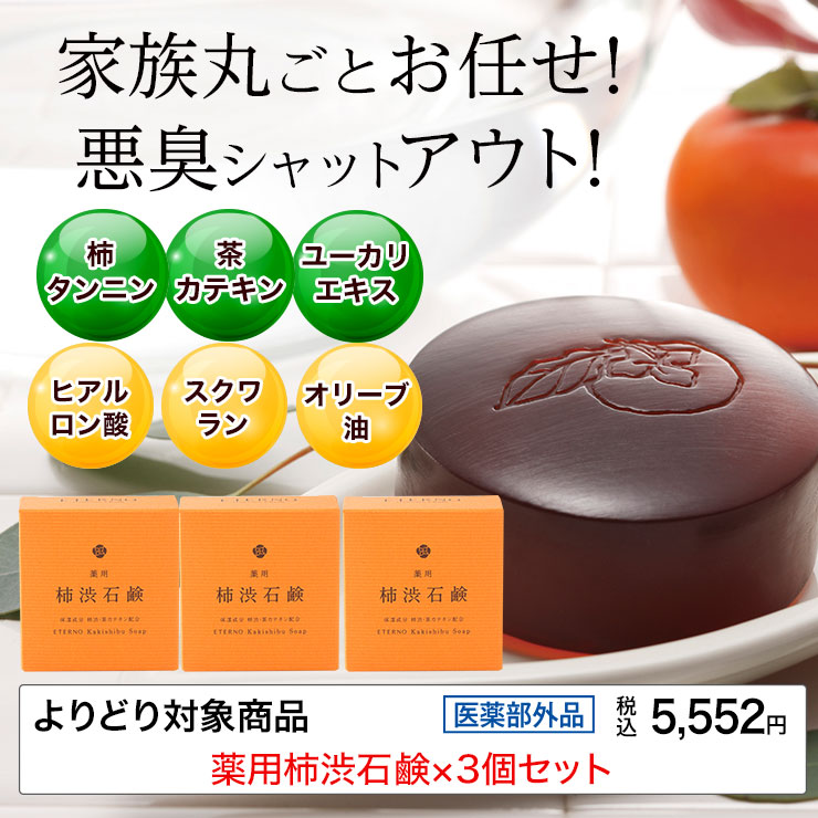 目元・口元・ほうれい線への乾燥小じわに一滴。原液100%のパワーを実感してください!5.薬用柿渋石鹸3個セット